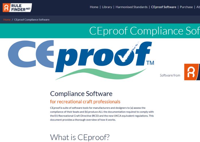 Our CEproof software package is a must-have to help naval architects, designers, and boat builders to comply with, and fully understand, the legal responsibilities outlined in the RCD and RCR. This comprehensive resource has been designed specifically to help you to generate precise technical documentation and other essential paperwork.